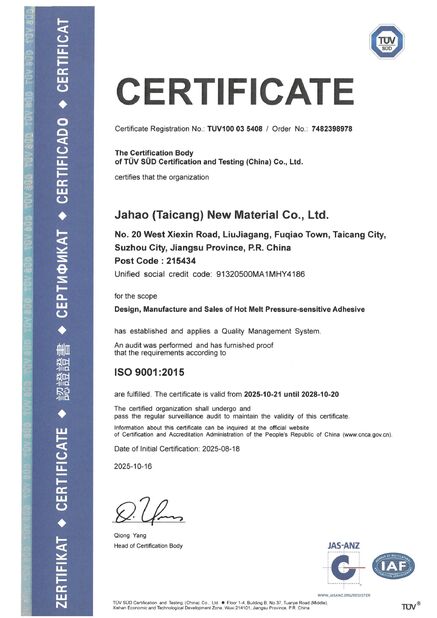 Tiêu chuẩn:ISO 9001: 2015 Con số:TUV100 03 5408 Ngày phát hành:2025-10-21 Ngày hết hạn:2028-10-20