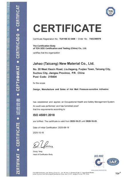 Tiêu chuẩn:ISO 45001: 2015 Con số:TUV100 03 5408 Ngày phát hành:2025-10-21 Ngày hết hạn:2028-10-20